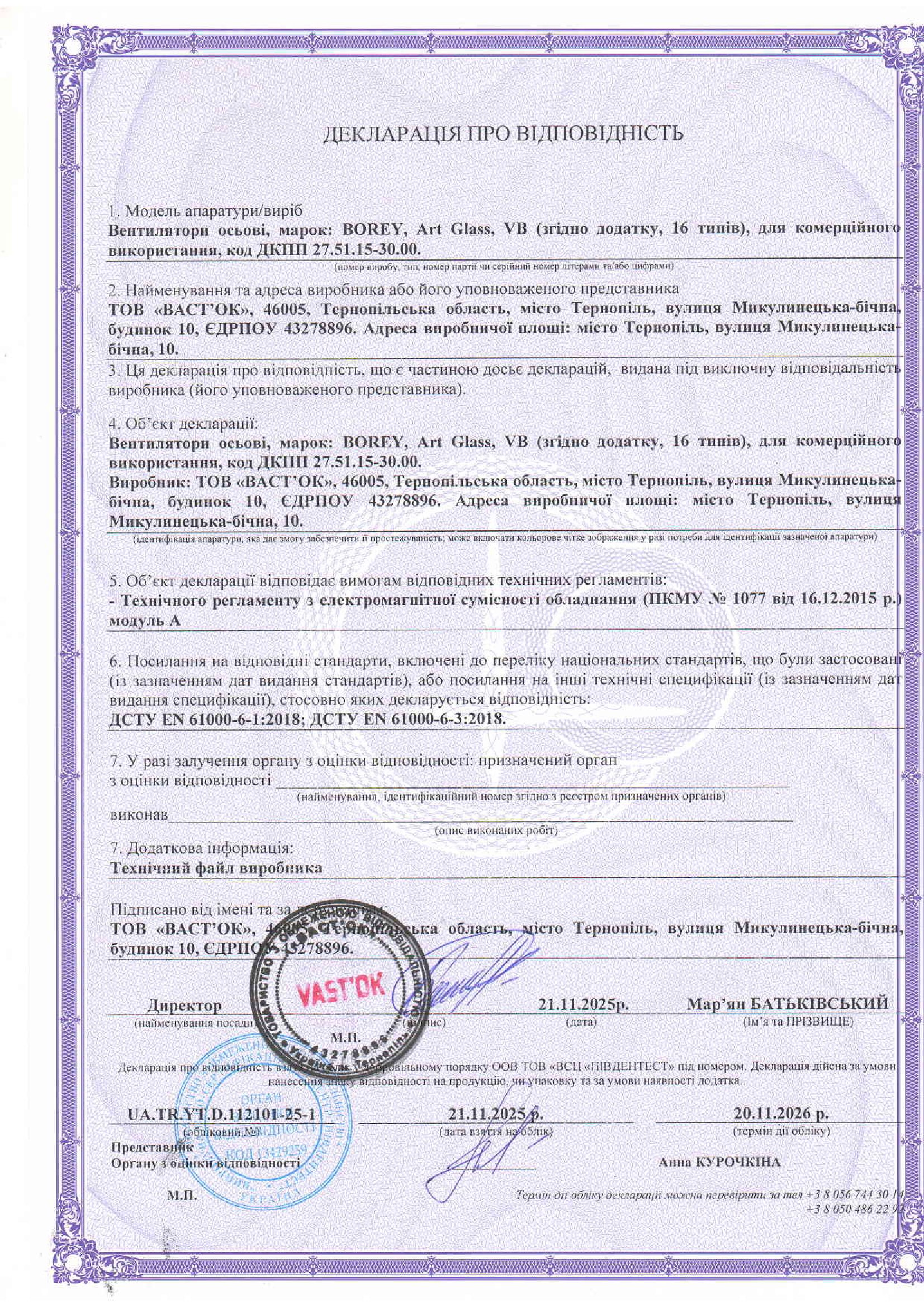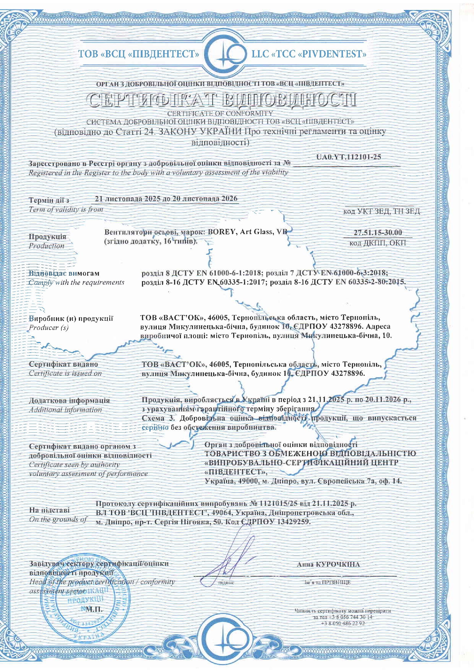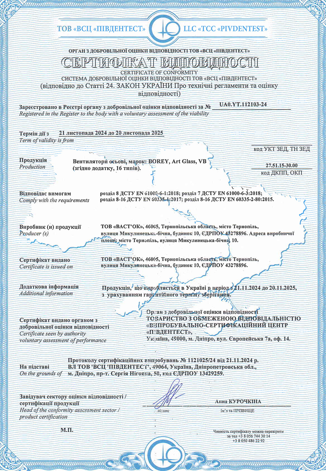 Компанія OSTVENT підтверджує якість, надійність і відповідність своєї продукції чинним технічним регламентам України та європейським стандартам.