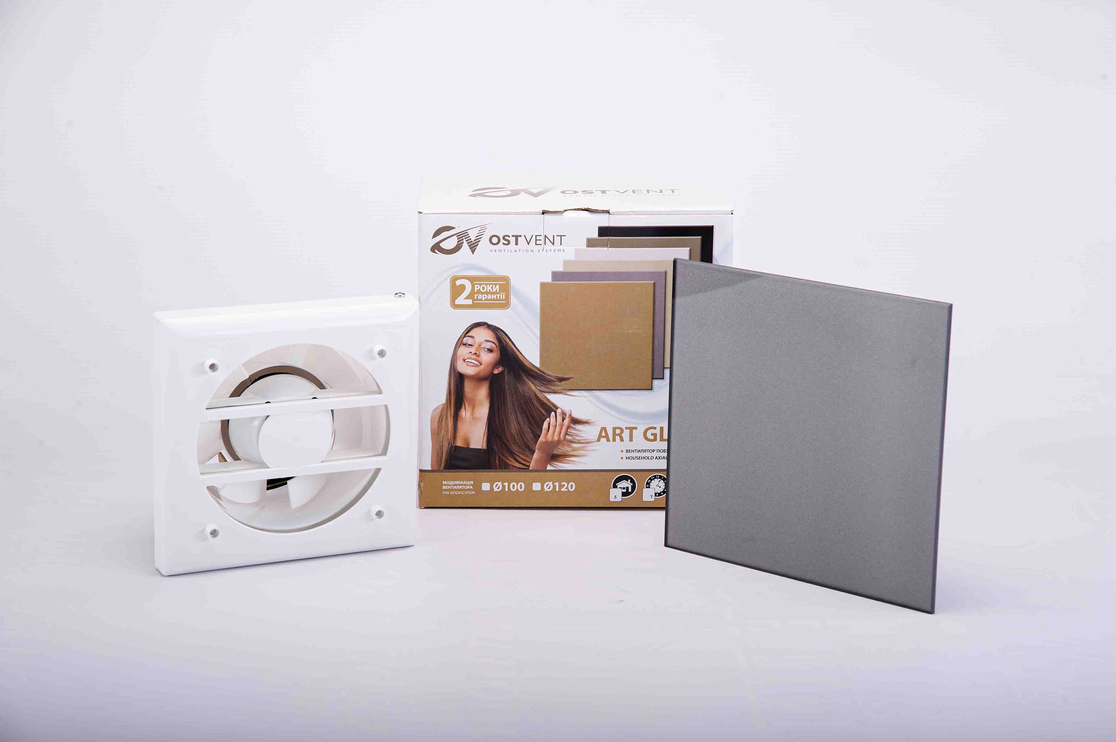 ART GLASS 100 S Grey – це високоякісний осьовий побутовий вентилятор, розроблений для ефективної витяжної вентиляції у ванних кімнатах, санвузлах, кухнях та інших житлових і офісних приміщеннях. Вентилятор належить до серії Art Glass OSTVENT, яка поєднує функціональність із сучасним декоративним дизайном.