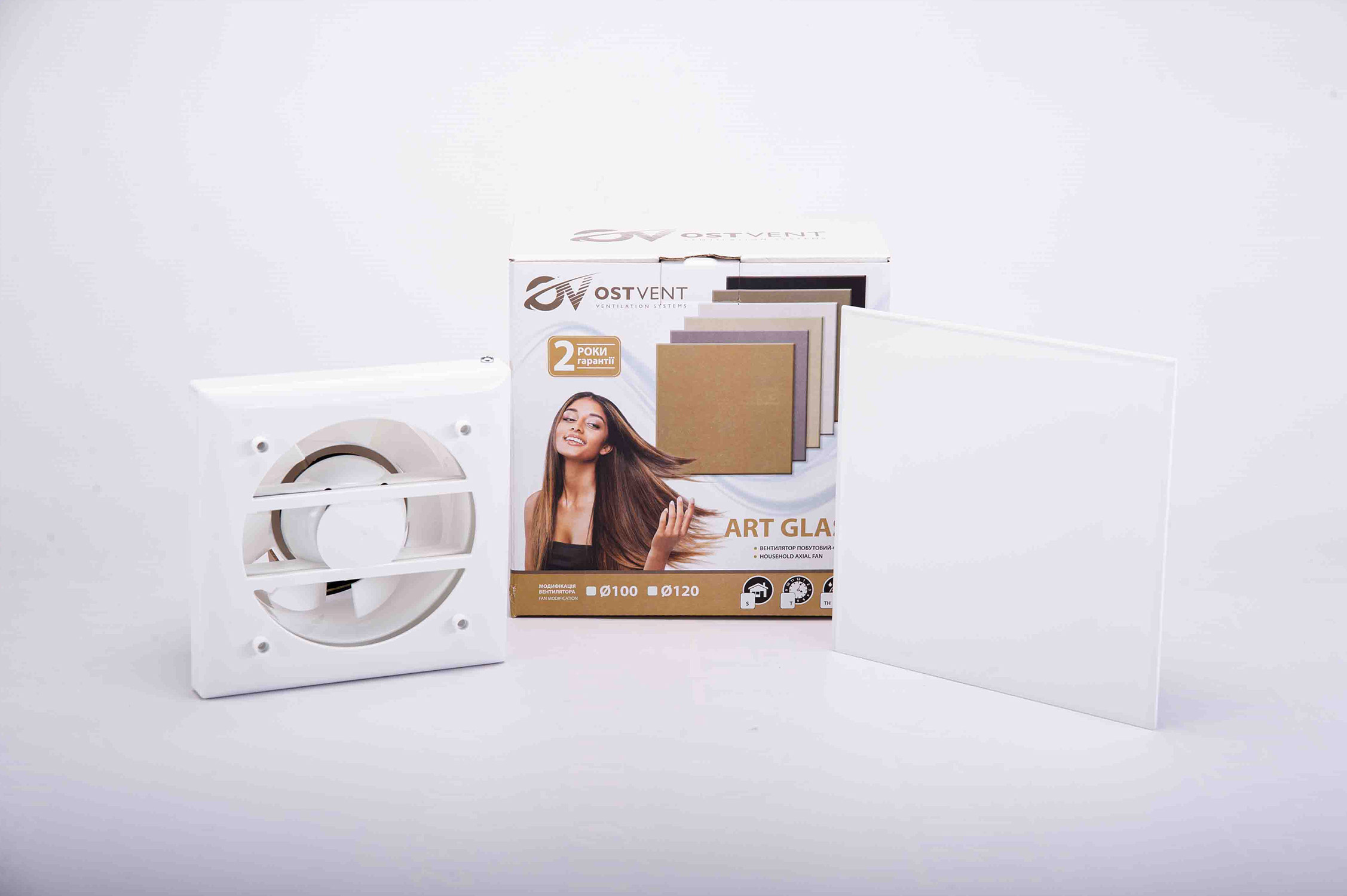 ART GLASS 120 S White – це високоякісний осьовий побутовий вентилятор, розроблений для ефективної витяжної вентиляції у ванних кімнатах, санвузлах, кухнях та інших житлових і офісних приміщеннях. Вентилятор належить до серії Art Glass OSTVENT, яка поєднує функціональність із сучасним декоративним дизайном.